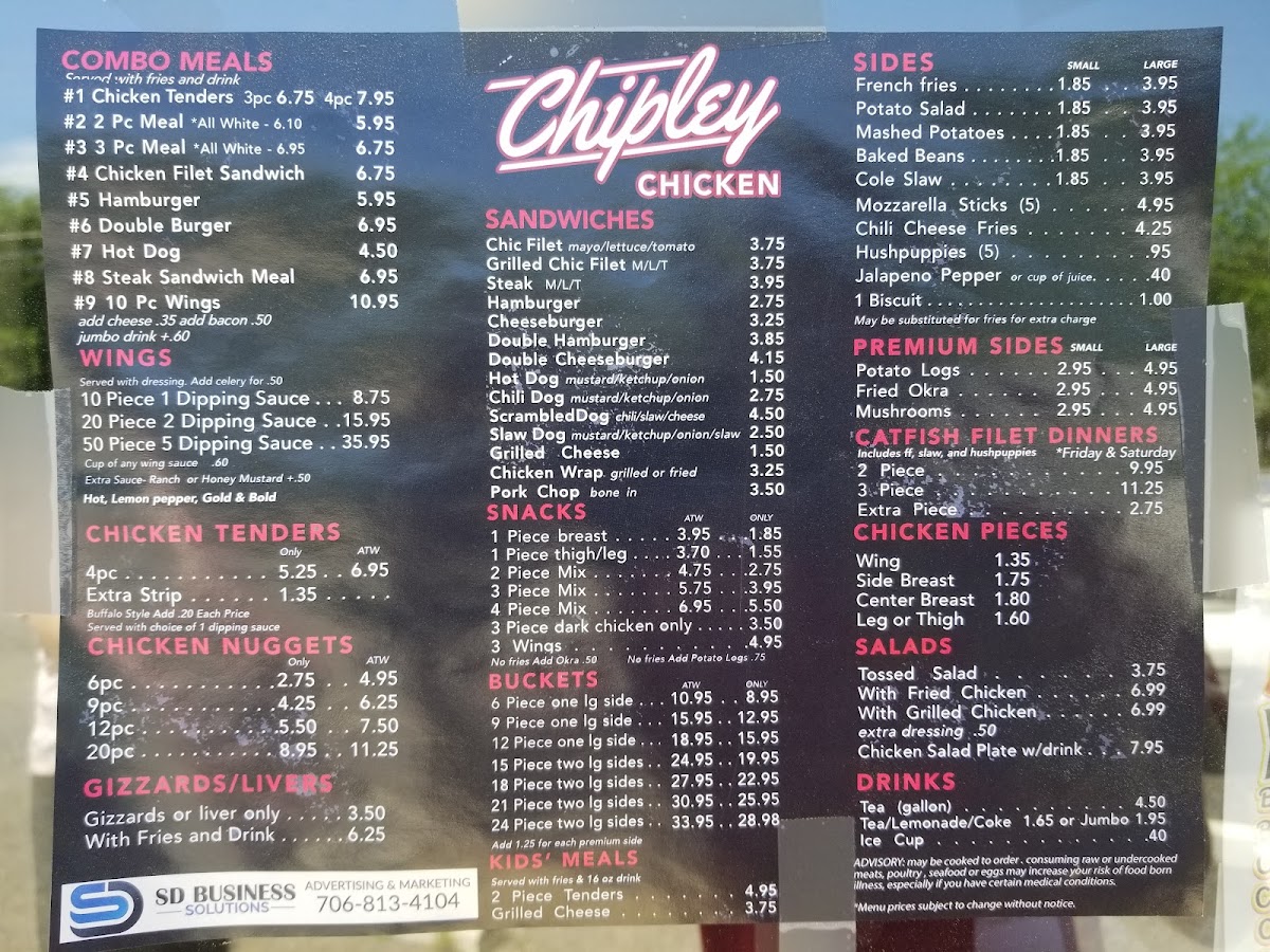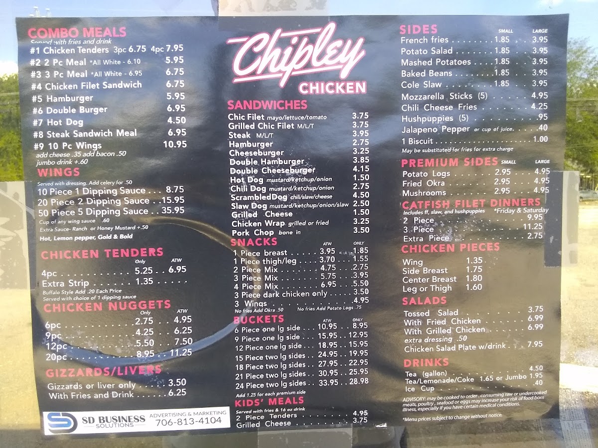 Chipley Chicken offers a straightforward, welcoming menu centered around classic Southern-style fried chicken and related comfort foods. The selection is perfect for casual meals whether you're stopping by for a quick lunch, sharing a relaxed dinner with family, or enjoying a friendly gathering.